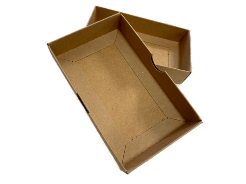 Deze doos wordt niet verlijmd en zet je zelf eenvoudig op. Doos en deksel zijn gemaakt van degelijke vouwkarton of Kraft.