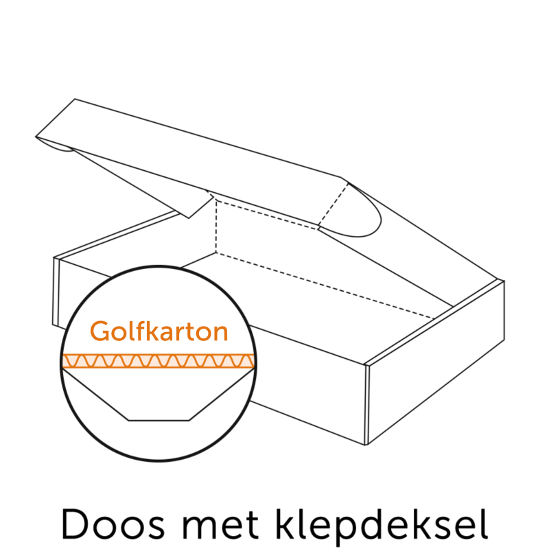 Chique verzenddoos met klepdeksel en daardoor een grote opening. Een zeer sterke doos door zijn dubbelwandige uitvoering. Deze doos wordt niet verlijmd en kan je dus zelf in elkaar zetten.  Gemaakt van een degelijke vouwkartonsoort, ook onbedrukt verkrijgbaar.