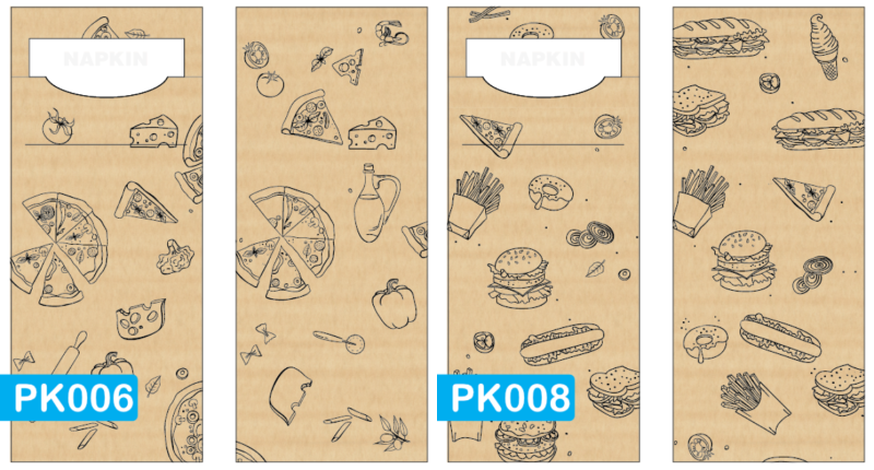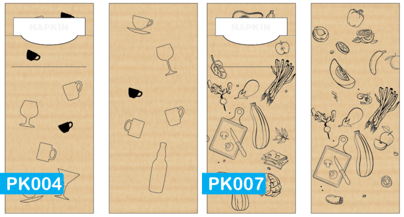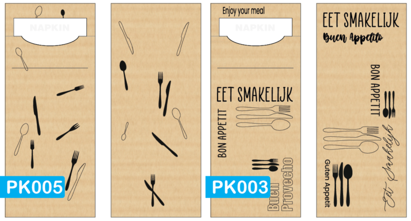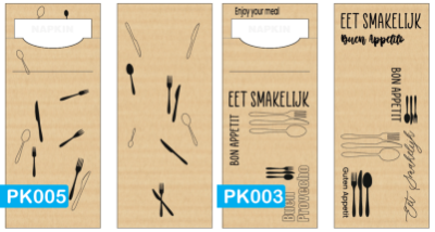Servetzakjes met eigen ontwerp, standaard ontwerp of een leuk thema ontwerp. Voor iedere horeca gelegenheid een passend ontwerp. Ook verkrijgbaar met Kraft papier of gekleurde servetten.