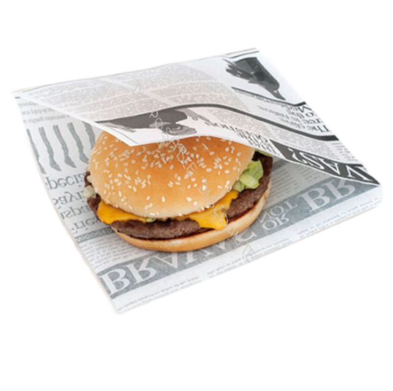 Hamburgerpapier bedrukken met eigen logo of ontwerp? Hamburgerpapier wordt ook wel vetvrij- of vetwerend papier genoemd. Vetvrij papier is een trendy horeca product en  geeft de presentatie van voedsel en jouw eigen logo een boost.
