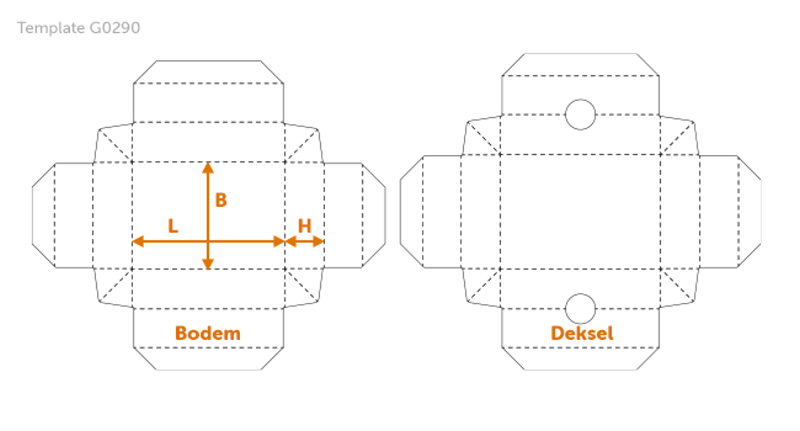 Deze doos wordt niet verlijmd en zet je zelf eenvoudig op. Doos en deksel zijn gemaakt van degelijke vouwkarton of Kraft.